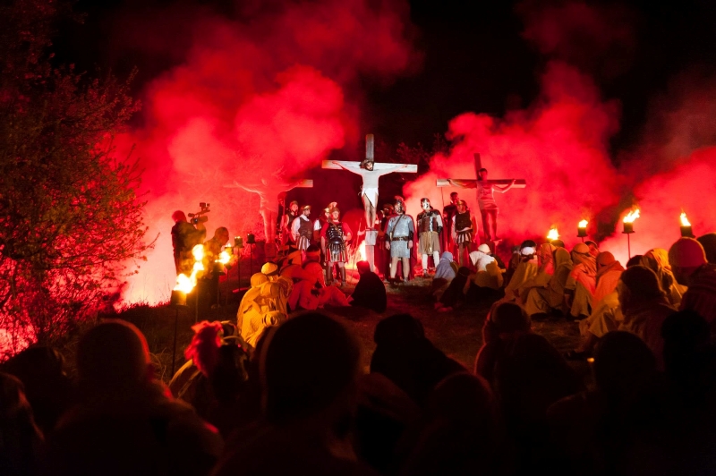 “La rappresentazione – ha spiegato la consigliera dell’associazione Passio Giulia Granci – è scandita dalle tappe principali della Passione di Cristo così come narrata dai Vangeli fino al momento finale della crocifissione nel punto più alto del paese, realizzata in maniera particolarmente suggestiva con il pubblico che può seguire il dialogo di Gesù con Dio e con i ladroni ed il commovente canto di Maria ai piedi della croce. Dal 2007 abbiamo introdotto anche scene di vita quotidiana del tempo, che fanno da cornice a quelle principali. Una novità inserita quattro anni fa è il momento della Resurrezione, scena tridimensionale di forte impatto emotivo”.