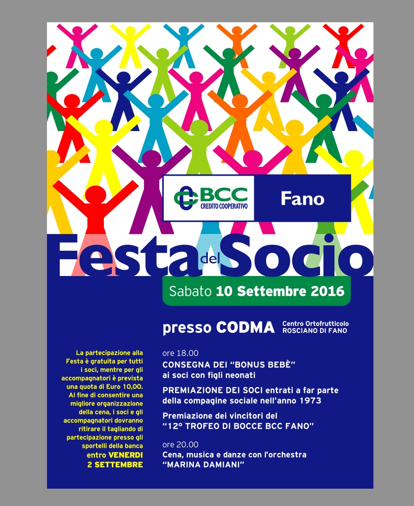 Sabato 10 settembre al Codma di Fano, a partire dalle ore 18, tutti i soci della Banca di Credito Cooperativo di Fano e i loro familiari sono invitati a condividere un momento di festa.