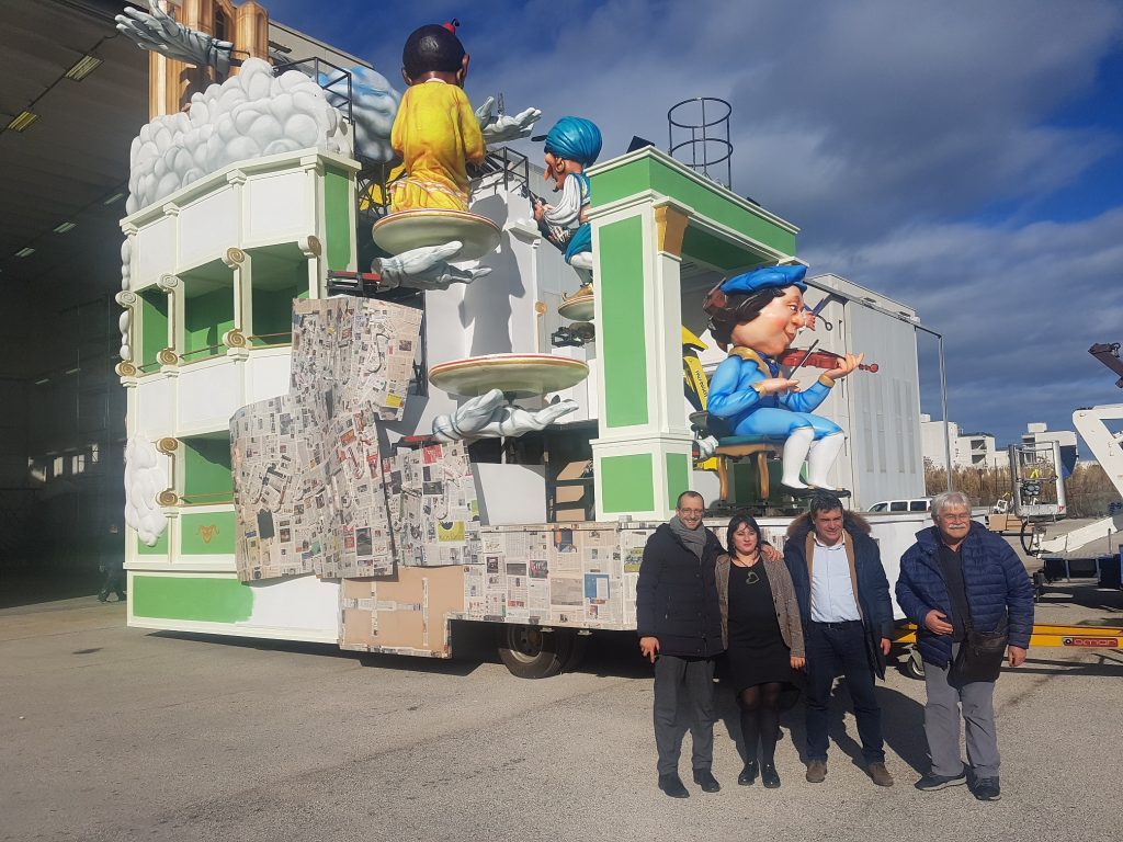 I SIMBOLI – Spiega Pierluigi Piccinetti, autore del progetto artistico: «L’idea nasce dal ricordo dei 200 anni dell’esibizione a Fano di Rossini. Ma allo stesso tempo, con bonaria ironia, sottolinea il suo amore non nascosto per la buona cucina». Il carro – 9 metri di larghezza, 13 di altezza e 15 di lunghezza – è preceduto da un piccolo complesso «rappresentato da don Basilio, personaggio del ‘Barbiere’ che canta ‘La calunnia…’, attorniato dai simboli della famosa aria. In primo piano il boccascena del torelliano Teatro della Fortuna. In secondo piano, gradoni rivestiti da grandi fogli di spartiti. Dietro al boccascena campeggia una tavola imbandita di cibarie. Più in alto, l’imponente figura di Rossini, intento a ‘suonare’, con un lungo coltello, un prosciutto a mo’ di violino. Ai lati, a scalare, escono braccia con mani guantate da cameriere. Che sostengono sei piatti di portata, a rappresentare opere di Rossini». Non mancano i simboli, dalla cattedrale di Reims, che ricorda ‘Il viaggio’, alla Palla di Pomodoro, su cui vola un grande Cigno. «Sarò alla prima sfilata», dice il sindaco di Pesaro.