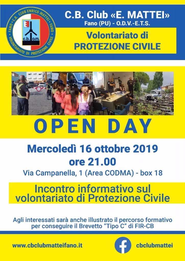 L’associazione fanese di volontariato di Protezione Civile organizza anche quest’anno il suo Open Day.