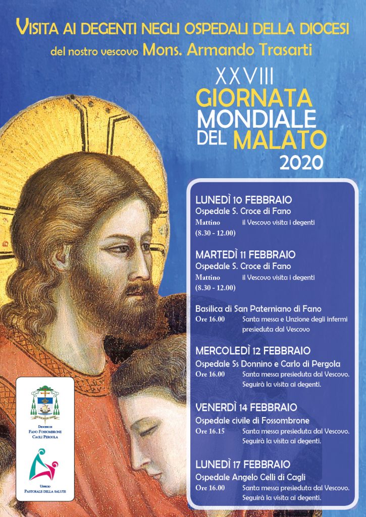 Lunedì 10 e martedì 11 febbraio, dalle ore 8.00 alle ore 12.00, il Vescovo Armando visiterà i degenti dell’ospedale Santa Croce di Fano. Alle ore 16.00, nella Basilica di San Paterniano, presiede la celebrazione eucaristica con Unzione degli Infermi.
