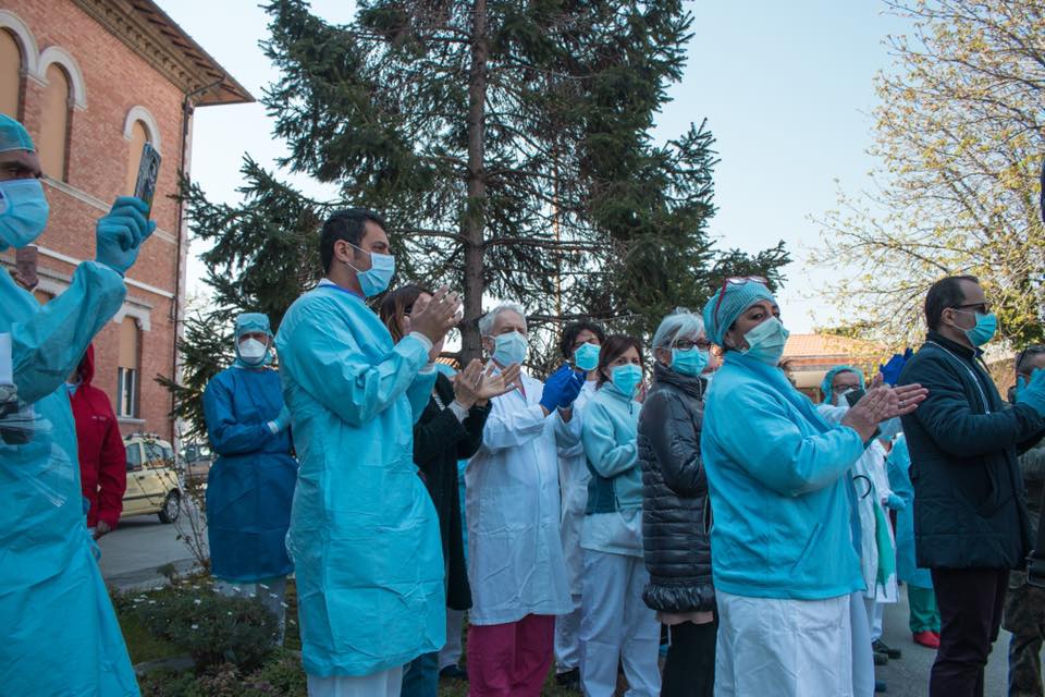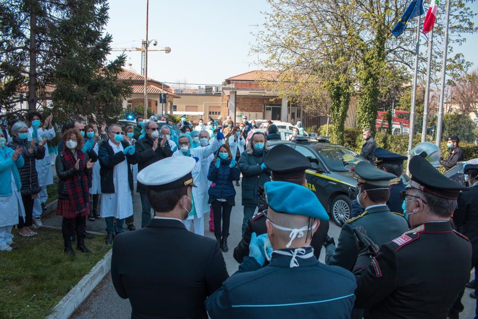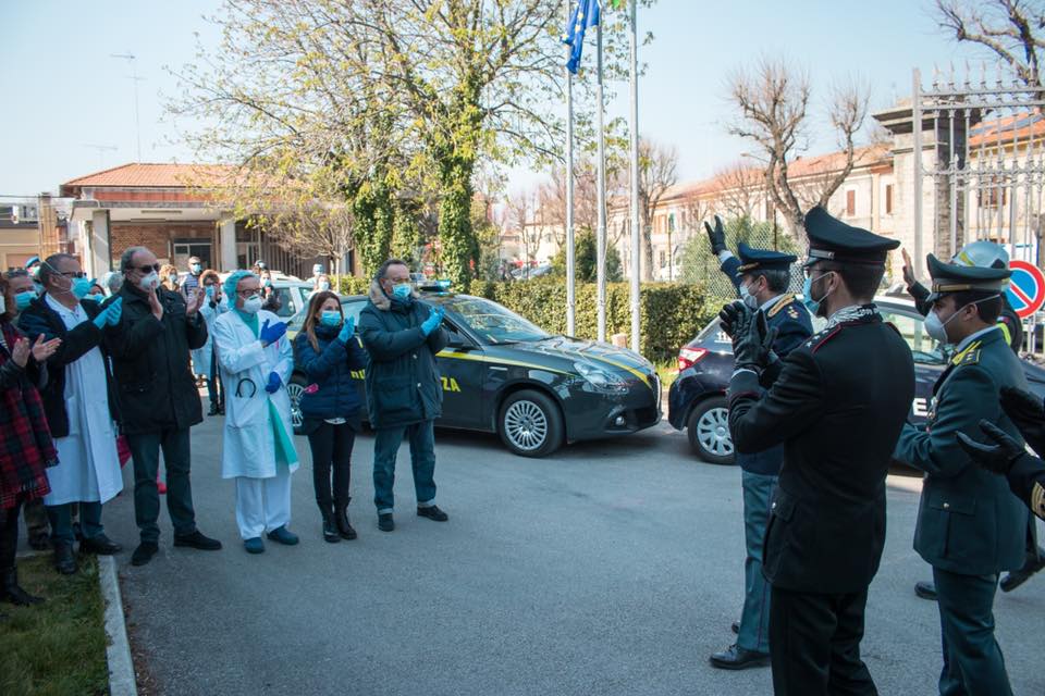 Le Forze dell’Ordine e il Sindaco hanno portato questa mattina il saluto della comunità e manifestato la loro gratitudine a tutti i medici, infermieri ed operatori sanitari dell’Ospedale Santa Croce di Fano impegnati nella battaglia quotidiana contro il Coronavirus.