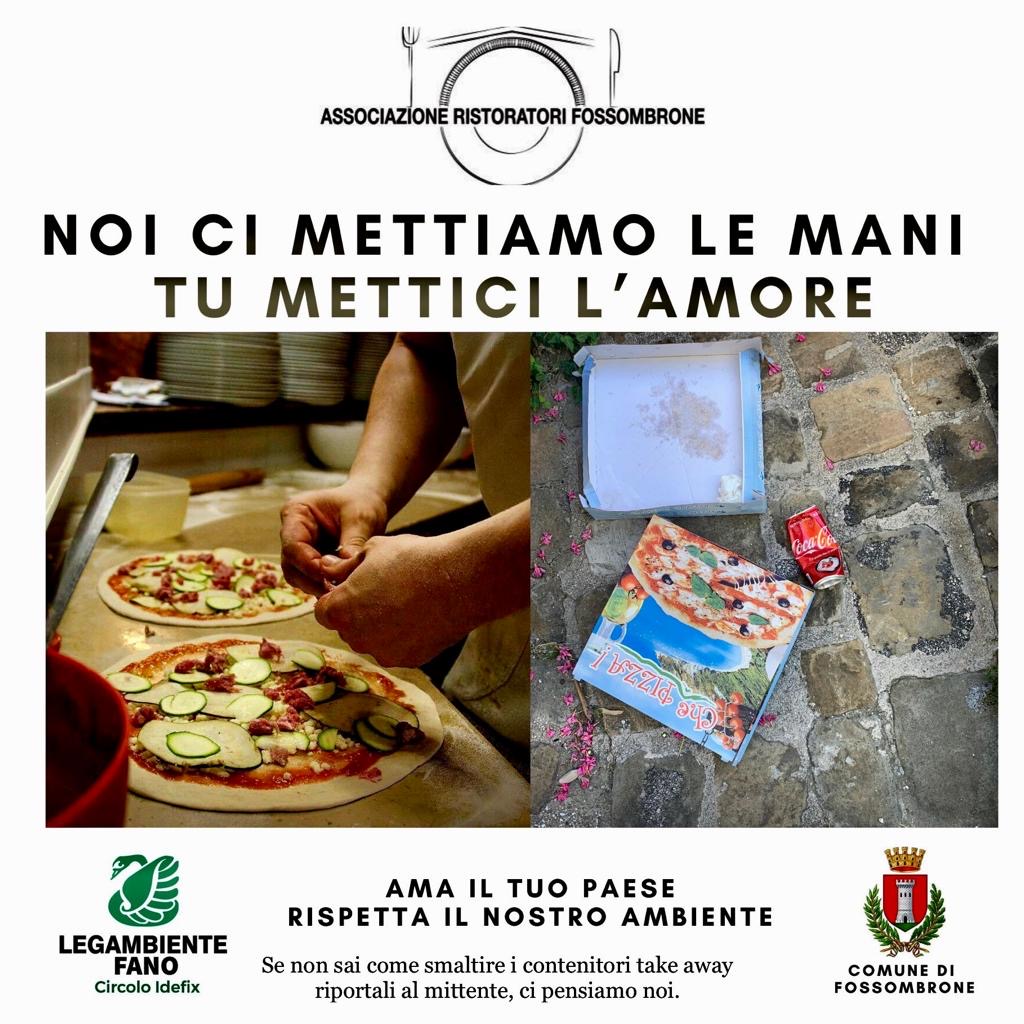 Con l’estate 2020, tra i ristoratori di Fossombrone, parte un nuovo servizio per difendere la tutela dell’ambiente del nostro borgo. Sono sempre di più le persone che acquistano oggi cibo di asporto nei nostri locali- con l’appoggio di tutti gli associati, dice Luca Zanchetti il presidente dell’associazione ristoratori Fossombrone – e consumano il pasto in queste belle serate estive nei suggestivi vicoli di Fossombrone oppure nelle panoramiche terrazze adiacenti al centro storico o semplicemente nei parchi del paese. Per tanto insieme abbiamo deciso di offrire un servizio unico nel territorio, per aiutare nel salvaguardare la bellezza dei nostri posti pubblici, cercando di sensibilizzare le persone colpendo il loro senso civico attraverso apposite campagne pubblicitarie sui nostri canali social. Il progetto non si limita semplicemente nella campagna via rete ma i ristoratori si sono offerti disponibili nel comunicare ai propri clienti che usufruiscono del servizio take away, che qualora non trovassero in zone limitrofe gli appositi cestini di spazzatura, possono portare i propri contenitori, ormai vuoti, direttamente nel locale dove sono stati acquistati, ci penserà il ristoratore dello smaltimento necessario. Questo servizio è stato subito visto di buon occhio anche dalla Legambiente Fano ( condotta che controlla anche il comune di Fossombrone ) che oltre a elogiare l’idea dei ristoratori associati di Fossombrone, si è resa disponibile nel promuovere l’iniziativa patrocinando la campagna e divulgarla anche essi presso i propri canali social”.