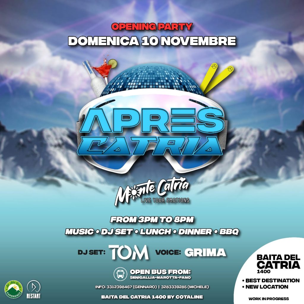 Domenica 10 novembre dalle 15 alle 20 è in programma, nella splendida location ‘Baita del Catria 1400 by Cotaline’, ‘Apres Catria’.
