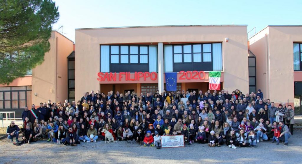 In ben trecento davanti all’obiettivo. Tutto il piccolo paese di fronte alla macchina fotografica per lo scatto atteso venti anni. Nessuno, domenica mattina, è voluto mancare a San Filippo sul Cesano, frazione di Mondavio, per la foto ‘20 anni dopo’. La comunità cesanense ha ripetuto il rito del 2000, per scrivere tutti insieme un’altra bellissima pagina di storia locale. Si sono ritrovati nei pressi della scuola materna dopo la santa messa. C’erano tutti, dal sindaco Mirco Zenobi, con la fascia tricolore, al parroco don Michele Giardini, fino al consigliere regionale ed ex primo cittadino Federico Talè. Giovanissimi e meno giovani, novantenni e nuove generazioni, chi anche seduto nel passeggino, abbracciati davanti al fotografo Ivo Serra, lo stesso che realizzò lo scatto venti anni fa. La scritta ‘San Filippo 2020’, la bandiera italiana e quella dell’Europa, i più piccoli a stringere tra le mani la fotografia del 2000, a far da cornice. Per molti una novità, per altri il bis: per tutti una grande emozione. «Resterà anche questo uno scatto nella memoria del paese», recitava l’invito. Proprio così: una iniziativa per fermare il tempo, immortalare una comunità, renderla ancora più unita. E’ stata l’occasione per la comunità per scambiarsi gli auguri di buon anno, ricordare aneddoti e personaggi del paese che non ci sono più, e quindi darsi l’appuntamento al 2040. Una mattinata da incorniciare in tutti sensi, impreziosita dall’arrivo di un pullman di turisti dalla provincia di Ravenna, che si è fermata per visitare il meraviglioso presepe artistico realizzato dall’associazione San Filippo nel Mondo all’esterno della chiesa di San Filippo Neri. «Una giornata speciale per la nostra comunità all’insegna dell’unione e dell’amicizia – sottolineano il presidente dell’associazione Mirco Serfilippi e il rappresentante di San Filippo feste Matteo Filippini – iniziata con la fotografia e proseguita con tantissime persone, anche turisti provenienti da lontano, a visitare il nostro presepe. Una grande soddisfazione: l’obiettivo di coinvolgere gli abitanti nella realizzazione e far conoscere il nostro meraviglioso territorio sono stati raggiunti».
