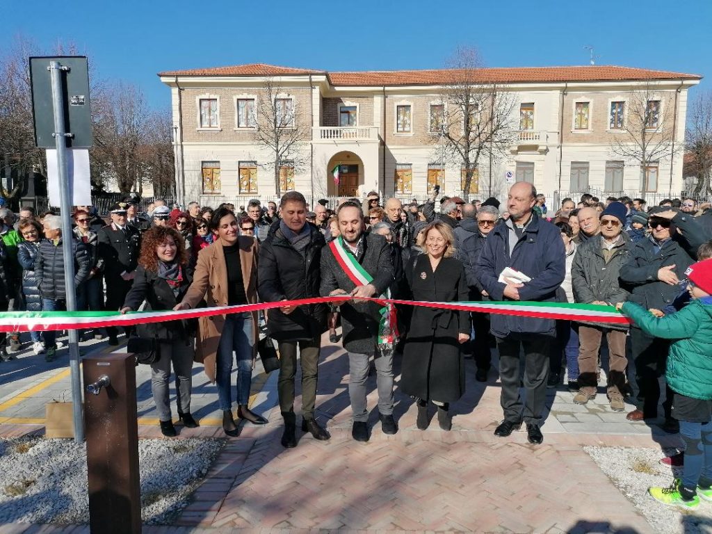 Accogliente, curata nei dettagli, con chiari riferimenti alla storia e alle tradizioni locali: è stata inaugurata piazza Ungaretti, dopo i lavori di riqualificazione e riorganizzazione. A tagliare il nastro il sindaco Mirco Zenobi, accompagnato dai colleghi di giunta, dal consigliere regionale Federico Talè, dal parroco don Michele Giardini e dalle progettiste Caterina Bernucci ed Elsa Campolucci. Tante le persone a riempire il cuore del paese, a testimonianza dell’importanza che per la popolosa riveste, da sempre, la piazza. E’ una delle opere pubbliche più importanti e attese degli ultimi anni. L’importo dell’intervento, iniziato lo scorso settembre, è di 200mila euro. «Siamo felici – ha esordito Zenobi – di restituire all’intero paese una piazza bella e accogliente, un luogo importante e vitale. Un percorso iniziato nel 2017 con il concorso di idee e portato avanti con il dialogo costante con i cittadini. Una piazza bella e fruibile, senza barriere architettoniche, uno spazio a misura d’uomo, pur mantenendo i parcheggi. Vogliamo che sia sempre più frequentata e viva e per questo abbiamo in mente di organizzarci, già dall’estate diversi eventi. Un ringraziamento al Banco Marchigiano per il contributo per l’illuminazione della facciata della scuola e a tutti coloro che hanno collaborato». Sono stati realizzati un nuovo arredo, la pavimentazione, il marciapiede frontale alla scuola, la nuova illuminazione che interessa anche la scuola primaria, e, in un lato, una vasca d’acqua con ruota che richiama quella di un mulino. La semina del nuovo prato verrà effettuata successivamente in presenza delle idonee condizioni meteo. Hanno poi preso la parola le progettiste: «Si è voluta rinnovare la piazza pur non stravolgendola. Si sono creati due aree ambienti distinti, uno spazio a misura d’uomo, di pedone, e l’altro dedicato ai parcheggi. E’ stato un lavoro intenso, di continuo confronto con l’amministrazione e i cittadini. Crediamo che il risultato sia molto positivo. L’obiettivo è sicuramente quello di vedere questa meravigliosa piazza sempre più affollata». Emozionato il consigliere regionale, ex sindaco di Mondavio, Talè: «Non nascondo che mi sono emozionato arrivando qui, ammirando la nuova piazza e i lavori fatti in precedenza. Ho ripensato all’ex sindaco Sebastiano Dominici, che teneva tanto a questa piazza e che ha voluto intitolare ad Ungaretti. Con lui sono iniziati gli interventi, su tutti la facciata della scuola. E oggi inauguriamo questo splendido spazio, rinnovato e riqualificato. Faccio i complimenti al sindaco, alla sua amministrazione e ai progettisti per l’ottimo lavoro. La piazza è un luogo dove ci incontra e non ci si incrocia semplicemente. Per una piccola comunità, per San Michele, riveste un ruolo di enorme importanza: l’auspicio è che sia sempre più vivo». Oggi sarà il carnevale a colorarla ed animarla. Domenica 15 marzo sarà la cornice per la foto di tutti gli abitanti del paese, grazie all’iniziativa di sanmichelealfiume.it.
