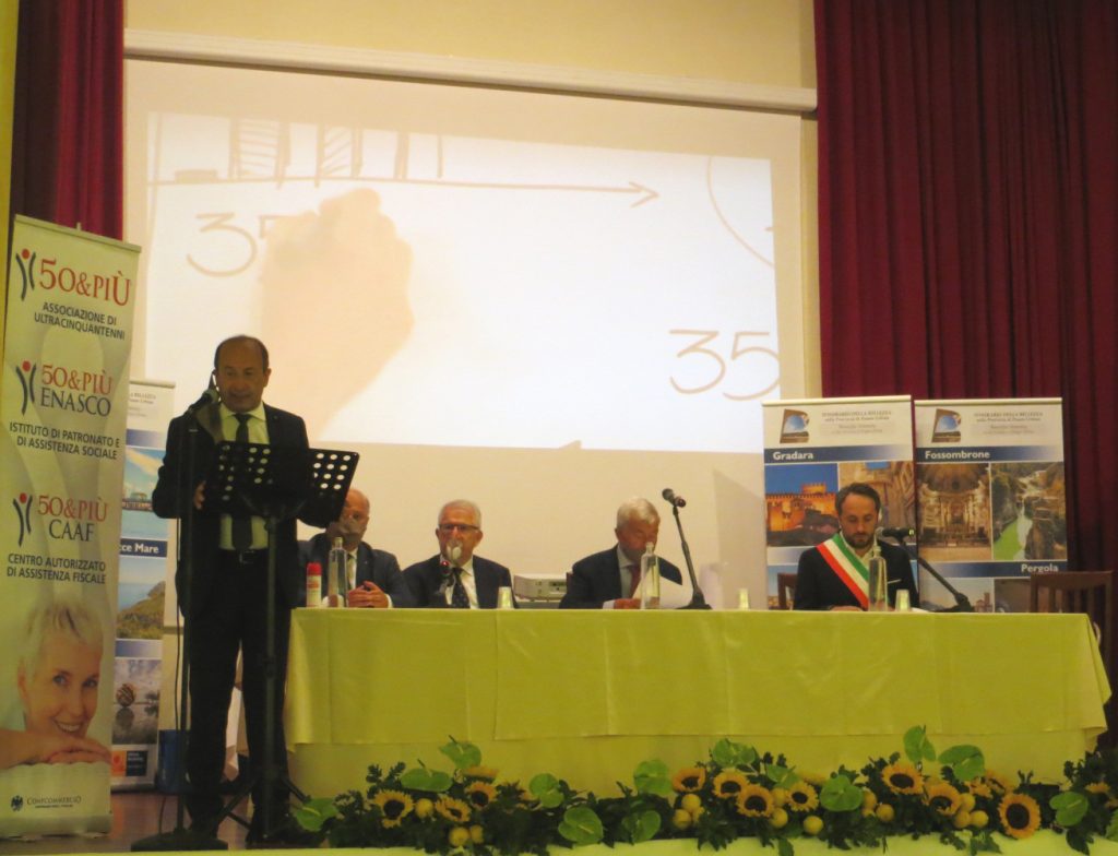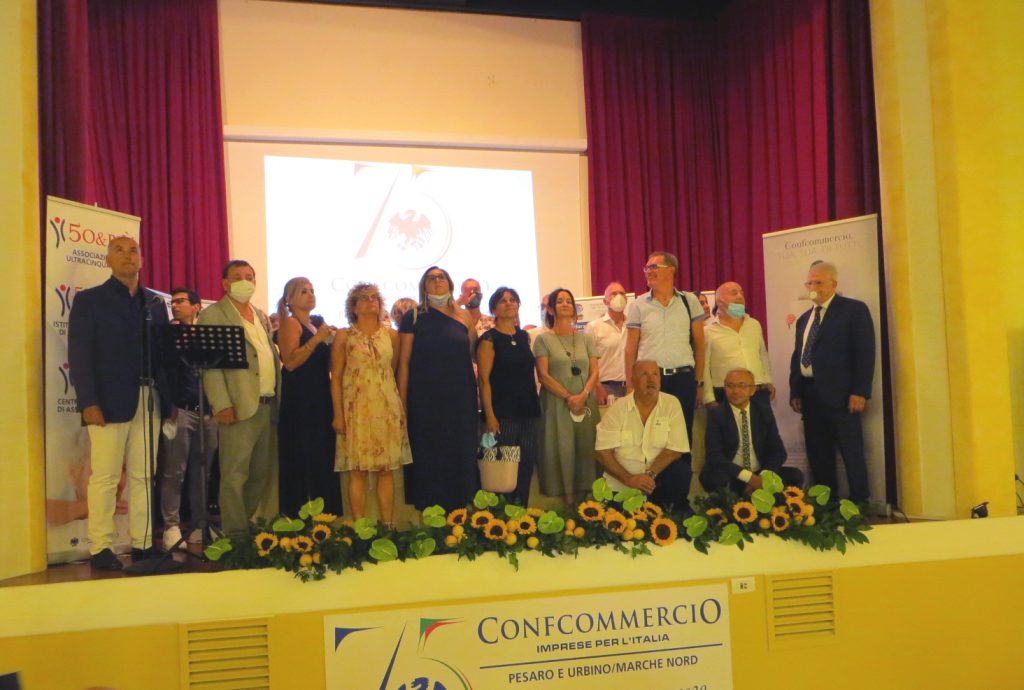 Settantacinque anni alle spalle, un brillante futuro davanti. Ne ha fatta di strada Confcommercio Pesaro Urbino e tanta altra è pronta a percorrerla al fianco delle imprese. Un traguardo straordinario che l’associazione ha voluto festeggiare a 75 anni esatti dal 31 luglio 1945, quando ventisette commercianti, davanti al notaio Giuseppe Fabbri di Pesaro, firmarono l’atto costitutivo della “Associazione dei Commercianti della Provincia di Pesaro e Urbino”. Confcommercio ha scelto Mondavio, uno dei borghi più belli della provincia, perla dell’Itinerario della Bellezza, progetto di promozione ideato dall’associazione, per il suo compleanno speciale.