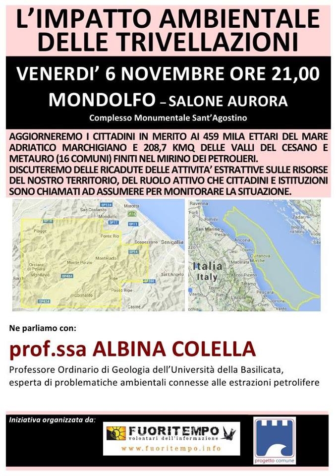 Venerdì 6 novembre a Mondolfo alle ore 21 il gruppo Fuoritempo e Progetto Comune organizzano l’incontro “L’impatto ambientale delle trivellazioni”.