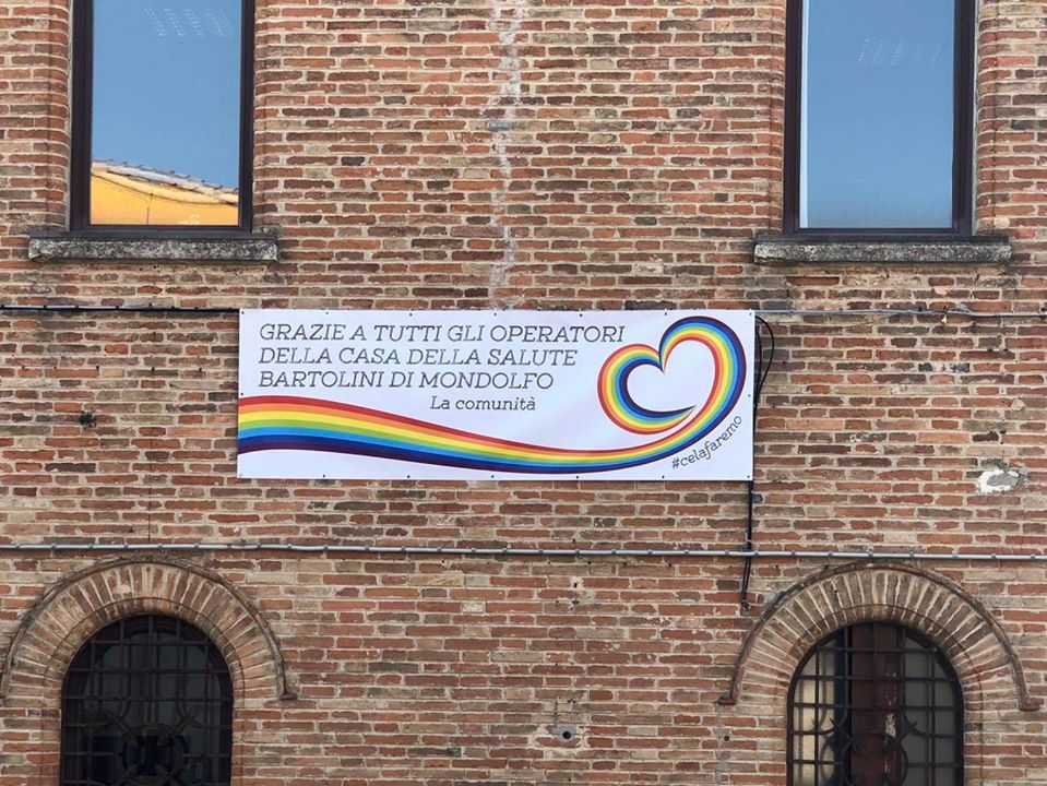 “Grazie a tutti gli operatori della Casa della Salute Bartolini di Mondolfo”: queste le parole dello striscione firmato ‘La comunità’ che l’amministrazione comunale ha esposto nel Palazzo comunale, rivolto verso la Casa della Salute Bartolini di Mondolfo.
