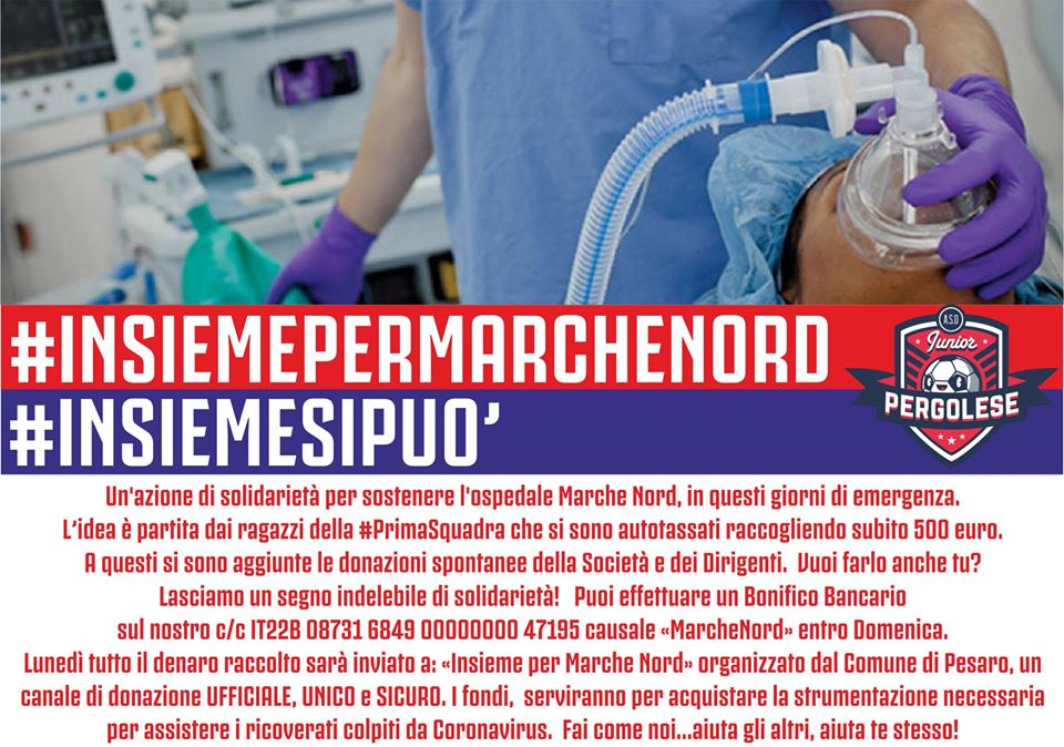 Dalla Junior Pergolese solidarietà per sostenere l’ospedale Marche Nord