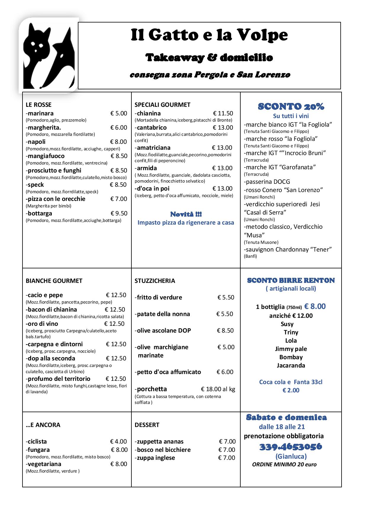 Sabato e domenica dalle ore 18 fino alle ore 21 il ristorante Il Gatto e la Volpe di Montevecchio di Pergola inizierà il servizio “Takeaway & domicilio”. Le consegne al momento saranno effettuate a Pergola e San Lorenzo in Campo.