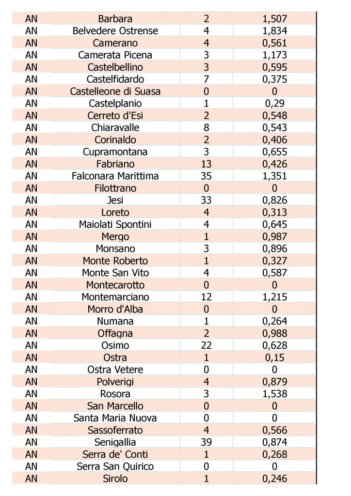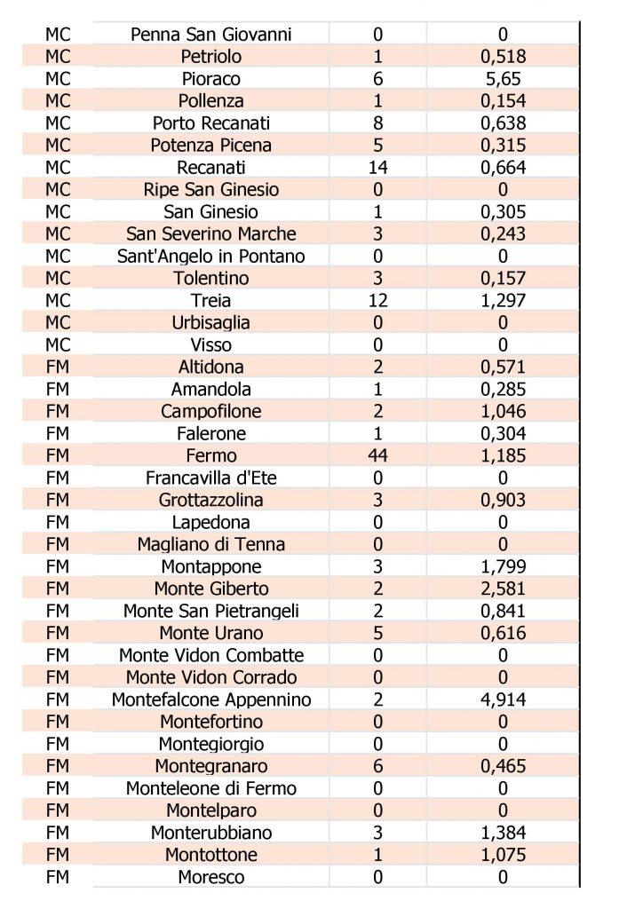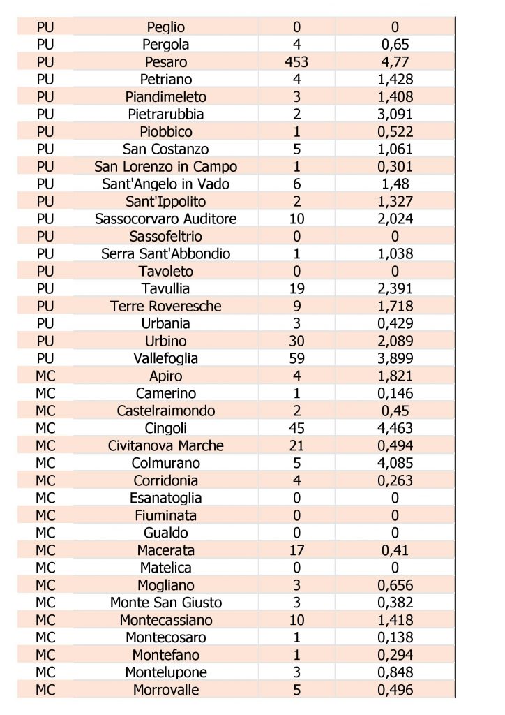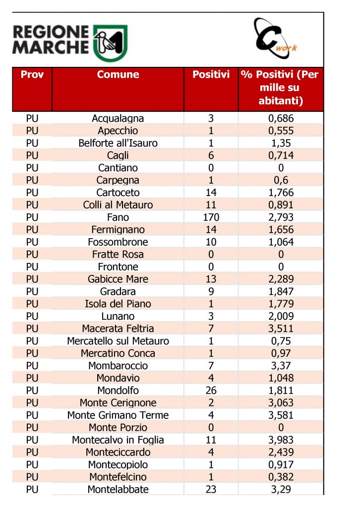 La Regione Marche pubblica per la prima volta la tabella con i dati dei tamponi positivi per ogni singolo Comune delle Marche.