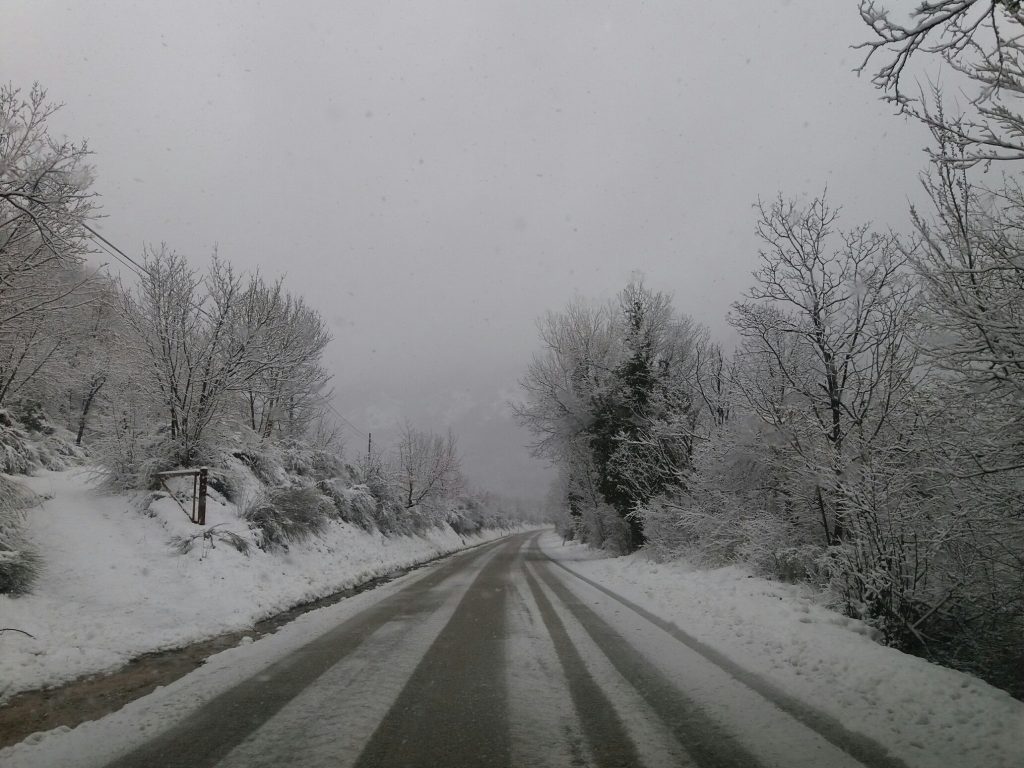 Settore Viabilità 3B NERONE – Nevicate in corso nella zona del Nerone (sp 140 Casciaia), strade transitabili con catene o pneumatici da neve.
