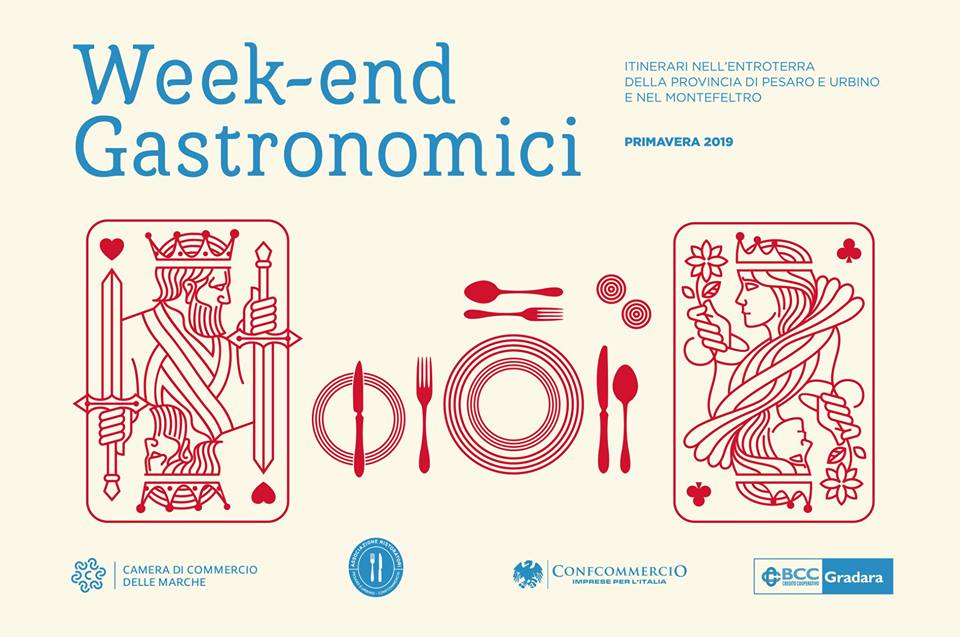 Domenica 31 marzo vi aspettano: Antica Osteria da Oreste di Casinina di Auditore (tel. 0722/629900) con frittata agli asparagi, frittata al tartufo nero, frittata ai fiori di zucca, tagliere di salumi nostrani con crescia sfogliata, tagliolini al tartufo nero, zavardone con ragù di salsiccia e fagioli, coscio di maiale al forno, galletto alla diavola, patate al rosmarino, insalata misticanza, mascarpone della casa e caffè; Hostaria del Castello di Gradara (tel. 0541/964125) con salumi e formaggi del territorio, ravioletti allo speck e radicchio, straccetti di filetto di manzo pendolini, rucola, grana e balsamico, patate al rosmarino, millefoglie scomposta ai frutti di bosco; La Cantinaza di Colli al Metauro – Montemaggiore al Metauro (tel. 0721/895904) con torta rustica, olive verdi e salame, pecorino con marmellata, crostino alle verdure, tagliatelle piselli e ragù, cappelli di zucca alla norcina, tagliata di pollo con rucola, grana e pendolini, coniglio in porchetta, patate al forno, insalata mista, crostata della casa; La Tagliata di Colli al Metauro – Serrungarina (tel. 0721/893009) con cascioncini ripieni, insalatina rustica, maltagliati di farro con carciofi e piselli, gnocchi al ragù d’anatra, coniglio al finocchietto selvatico, capocollo alla griglia, patate al forno, insalata, panna cotta con coulisse di fragole.