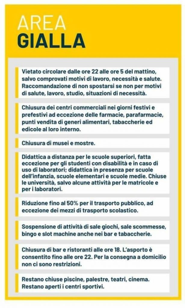 E’ arrivata l’ufficialità: da domenica 6 dicembre le Marche saranno in ZONA GIALLA. Cosa comporta e cosa prevede il Dpcm.