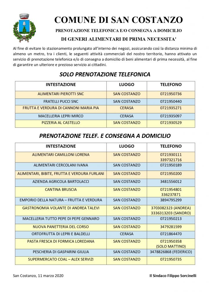 SAN COSTANZO accoglie il monito #iorestoacasa e si fa fautore di un’encomiabile iniziativa. Tutte le attività commerciali e le farmacie del Comune, su proposta dell’Amministrazione, si sono infatti rese disponibili a svolgere un servizio di prenotazione telefonica e/o consegna a domicilio di generi alimentari e farmaci.
