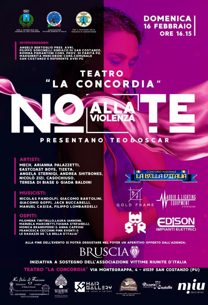 NO-te ALLA VIOLENZA Domenica 16 Febbraio dalle ore 16:15 presso il teatro della Concordia di San Costanzo.