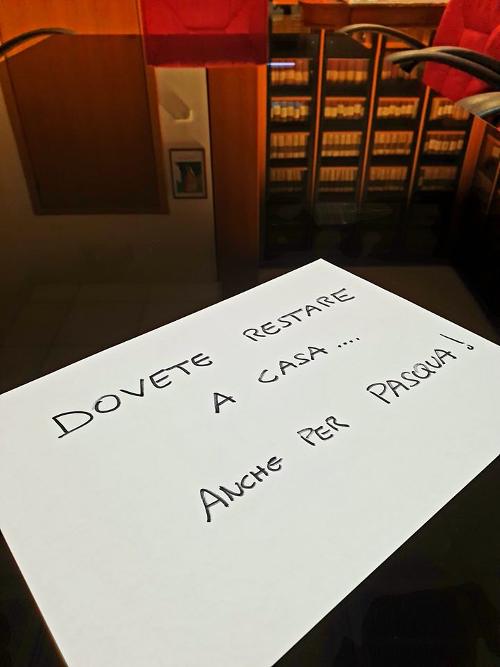 E per concludere, cosa più importante visto che siamo all’interno della “Settimana Santa” e domenica è Pasqua: E’ VIETATO anche fare pranzi, cene e ricevimenti di famiglia con tutti i parenti! Ognuno di noi, nell’intimità della propria abitazione, può celebrare al meglio la Santa Pasqua.