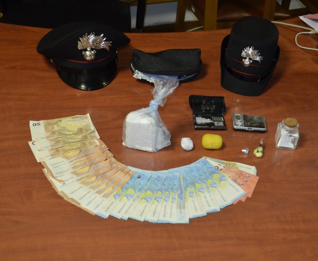 Anche in casa dell’uomo, immediatamente perquisita, i carabinieri trovavano tre dosi di sostanza che alla vista dei militari tentava di disfarsene lanciandole fuori, nonché ritagli circolari di cellophane.