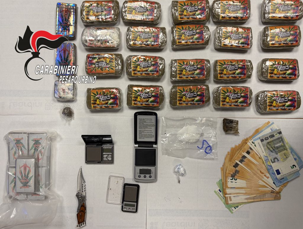 L’operazione è stata poi estesa alle abitazioni degli indagati a Fano e Tavullia, portando al rinvenimento di ulteriori quantitativi di droga.