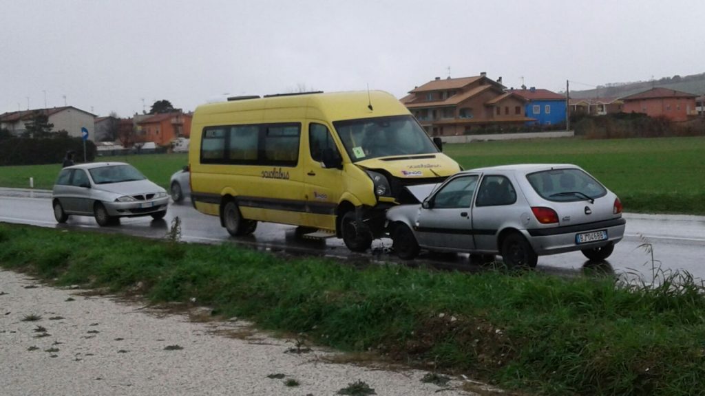 Incidente stradale sulla statale Adriatica all’altezza di Ponte Sasso tra uno scuolabus e un’auto. Sul luogo dell’incidente la polizia municipale e i carabinieri per ricostruire la dinamica. Sullo scuolabus viaggiavano i ragazzi che frequentano la scuola media Faà di Bruno a Marotta.