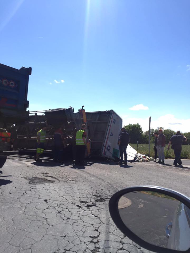 Incidente nei pressi della rotatoria, all’uscita della superstrada, non lontano dalla zona industriale di Bellocchi, lungo via Chiaruccia. Si è ribaltato il rimorchio collegato al mezzo pesante. Rifiuti lungo la strada. Sul posto la polizia. Nessun ferito.