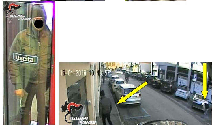 o F.A. e T.I. perpetravano la rapina a mano armata, a volto parzialmente coperto, il 18 gennaio 2018, ore 10.45, in Pesaro, via Mastrogiorgio n.24, ai danni della banca “CARIM”, bottino € 10.000;
