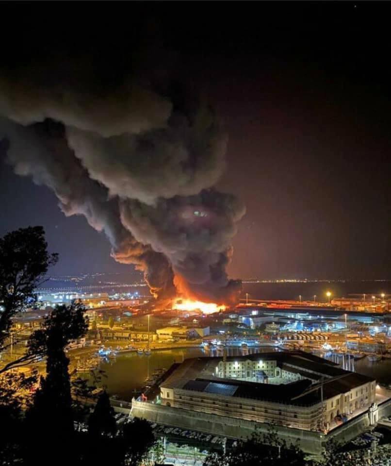 Un incendio di vaste proporzioni è divampato, per causa ancora in corso di accertamento, nel porto di Ancona. Le fiamme sono partite intorno alle 00:35 all’interno del capannone ex Tubimar.