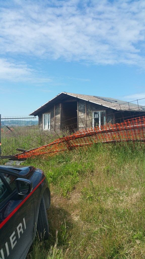 Un cittadino segnala al 112 uno strano movimento in un cantiere edile in località Caminate di San Costanzo. I carabinieri della locale stazione raggiungono immediatamente il posto. Lo conoscono bene perché oggetto di innumerevoli contenziosi motivo per il quale i lavori sono fermi da moltissimo tempo. Raggiunto il cantiere trovano la catena del cancello recisa e parte della rete di recinzione abbattuta.