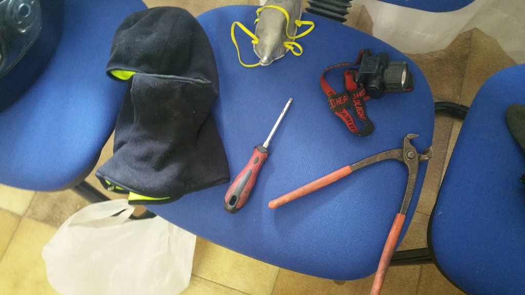 All’interno dello zaino, di proprietà dell’uomo così come lo scooter, i militari rinvengono gli attrezzi del mestiere ovvero un passamontagna nero, una torcia da minatore, pantalone di ricambio, tenaglie e tronchesi.
