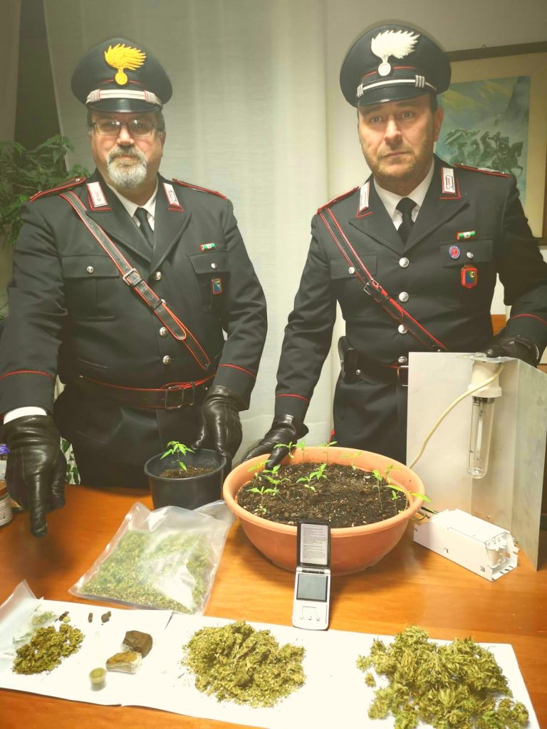 I carabinieri della stazione di Pergola, nel corso di un’operazione congiunta con i colleghi di San Lorenzo in Campo, hanno arrestato per coltivazione di marijuana e spaccio di hashish un quarantatreenne artigiano del posto con vari precedenti. Nel corso della perquisizione della sua abitazione i carabinieri hanno sequestrato quasi due etti di marijuana, un panetto di hashish ed un bilancino di precisione. Nel garage dell’abitazione l’artigiano aveva invece realizzato una piccola serra professionale con tanto di telo termoriflettente, lampade per l’illuminazione ed il riscaldamento ove erano in fase di crescita una dozzina dipiantine di marijuana. L’artigiano è stato associato alla casa circondariale Villa Fastiggi di Pesaro e dopo l’interrogatorio di garanzia, il giudice del Tribunale di Pesaro, oltre a convalidare l’arresto, gli ha applicato la misura cautelare della custodia in carcere.