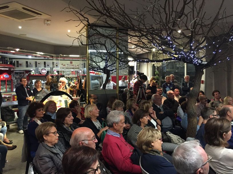 “Questo lunedì, spinto dalla curiosità, ho avuto la fortuna di assistere alla Pasticceria le Terrazze di Fano ad una stupenda esibizione di tre artisti locali conosciutissimi in città per la loro preparazione artistica e per lo loro innata simpatia, precisamente Filippo Tranquilli, Stefano Facchini e Lorenzo Alessandrini, accompagnati alla fisarmonica dal bravissimo Giovanni Oliva, detto Vanni.