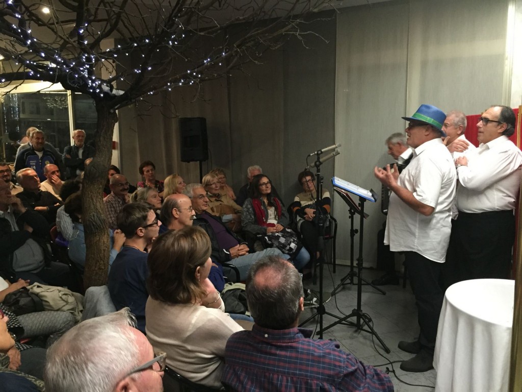 “Questo lunedì, spinto dalla curiosità, ho avuto la fortuna di assistere alla Pasticceria le Terrazze di Fano ad una stupenda esibizione di tre artisti locali conosciutissimi in città per la loro preparazione artistica e per lo loro innata simpatia, precisamente Filippo Tranquilli, Stefano Facchini e Lorenzo Alessandrini, accompagnati alla fisarmonica dal bravissimo Giovanni Oliva, detto Vanni.