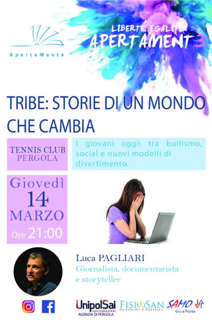 Appuntamento a giovedì 14 marzo, ore 21.00 al Tennis Club Bruno Melandri di Pergola, per TRIBE: STORIE DI UN MONDO CHE CAMBIA, con Luca Pagliari.