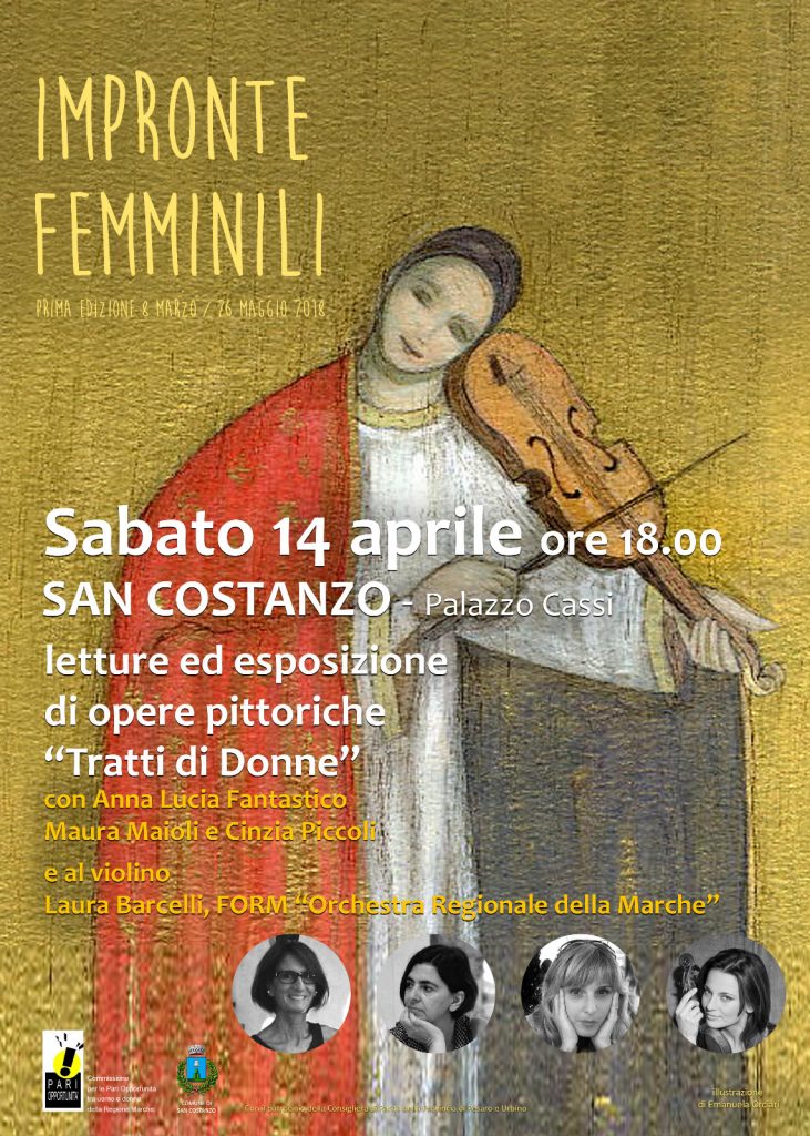 L’appuntamento è inserito nel cartellone di “Impronte Femminili” (qui il programma completo www.facebook.com/improntefemminili ) rassegna di arte, cultura e narrativa per le pari opportunità dall’8 marzo al 26 maggio alla sua prima edizione, prodotta della Commissione Pari Opportunità della Regione Marche, in collaborazione con otto Comuni della Provincia di Pesaro Urbino.