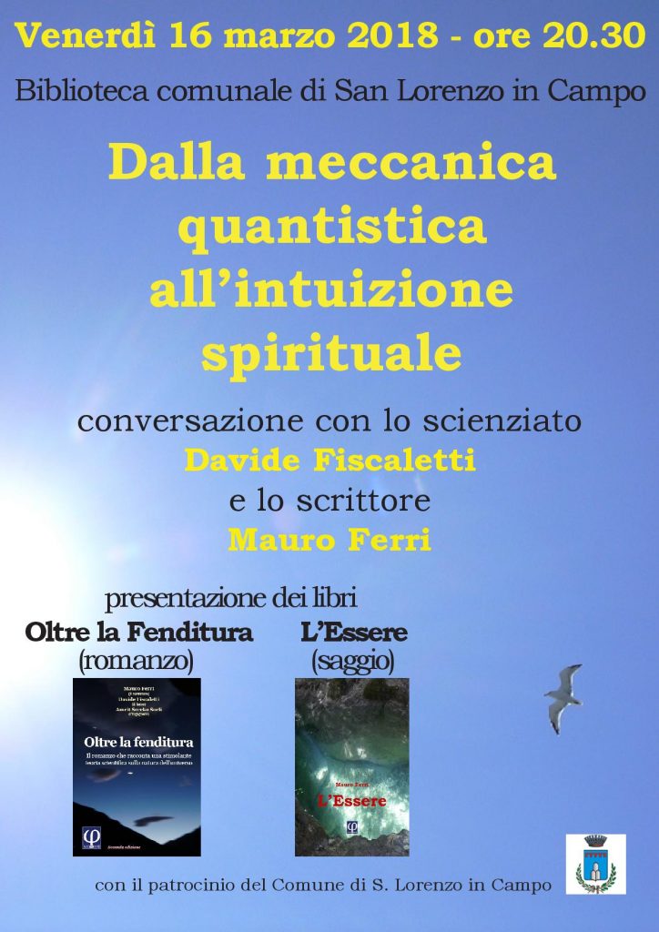 La biblioteca di San Lorenzo ospita venerdì alle 20.30 l’incontro “Dalla meccanica quantistica all’intuizione spirituale”. Intervengono lo scienziato laurentino Davide Fiscaletti e lo scrittore Mauro Ferri.