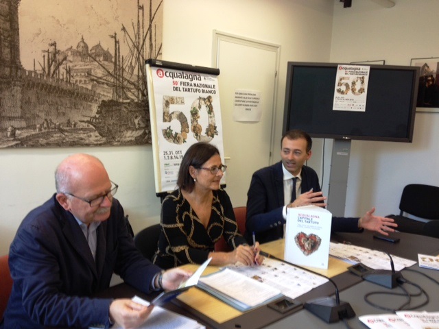 “Ci prepariamo a festeggiare il cinquantesimo anniversario con una grande edizione, un evento storico che si terrà in una stagione particolare per la raccolta del tartufo: quando si prospetta con una produzione più abbondante, più profumata, di qualità ottima e soprattutto con prezzi più accessibili. Acqualagna, capitale del tartufo fresco tutto l’anno, crocevia internazionale della produzione, del commercio e della degustazione del prezioso tubero, è l’unica al mondo ad avere una piazza al Tartufo (piazza Enrico Mattei), l’unica che si distingue per la generosità dei commercianti che espongono il tartufo all’aperto, quando sappiamo che all’aria perde peso e quindi valore economico. L’unica con una Borsa che indica i prezzi del Tartufo a livello nazionale. Nella nostra area, inoltre, l’economia del tartufo vive un periodo particolarmente florido: sovente nascono nuove startup legate al tartufo come per esempio l’ultima in ordine di tempo che esporta i nostri prodotti in Marocco“. Con queste parole il Sindaco del Comune di Acqualagna, Andrea Pierotti, ha aperto la conferenza di presentazione della 50^ edizione della Fiera Nazionale del Tartufo Bianco Pregiato (1966-2015), in programma il 25 e 31 ottobre e 1, 7, 8, 14 e 15 novembre prossimi.