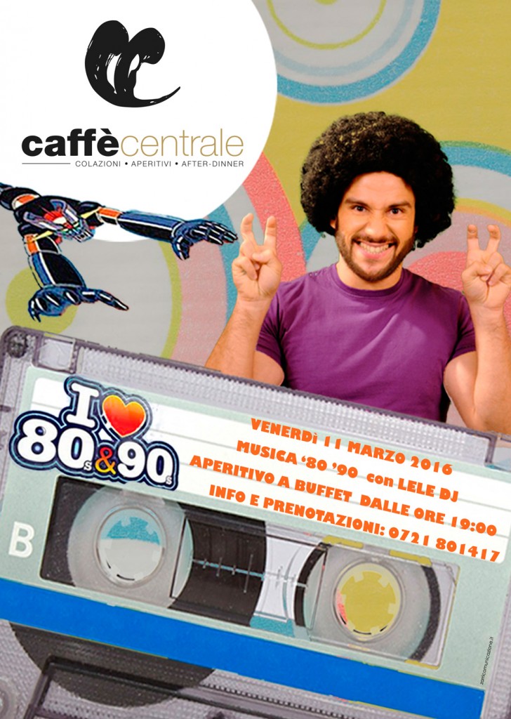 Per chi ha nostalgia di quegli anni indimenticabili, il Caffè Centrale organizza venerdì 11 marzo 2016 una serata con aperitivo buffet, la musica a tema di Lele dj e sorprese dedicate a quel periodo. (Per prenotazione tavoli 0721/801417)