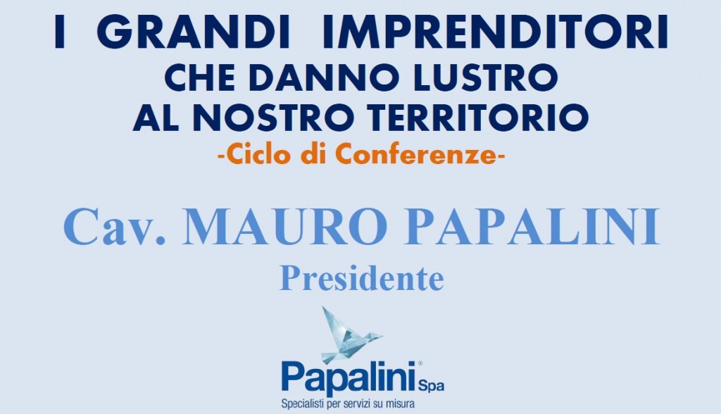 Dopo i saluti dell’Ing. Tombari, presidente della Fondazione Carifano e l’introduzione del prof. Consoli, Mauro Papalini, cavaliere dell’ Ordine al Merito della Repubblica Italiana, racconterà la sua storia imprenditoriale, iniziata con la nascita di un’impresa artigiana e le strategie vincenti adottate che oggi l’hanno fatto diventare un’azienda leader a livello nazionale.