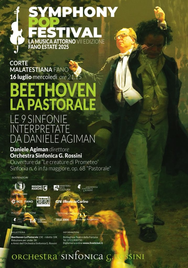 Il Symphony Pop Festival, promosso dall’Orchestra Sinfonica G. Rossini assieme al Comune di Fano, col patrocinio della Regione Marche e del Ministero della Cultura e il sostegno degli sponsor BCC Banca di Credito Cooperativo ed Enereco, prosegue con un concerto del “Ciclo Beethoven”, ideato dal direttore musicale della Sinfonica Rossini, Daniele Agiman. La stupenda cornice della Corte Malatestiana di Fano, la cui acustica non ha nulla da invidiare a quella di una sala da concerto, ospiterà infatti una delle sinfonie più famose in assoluto di Ludwig van Beethoven, la sesta: Pastorale.