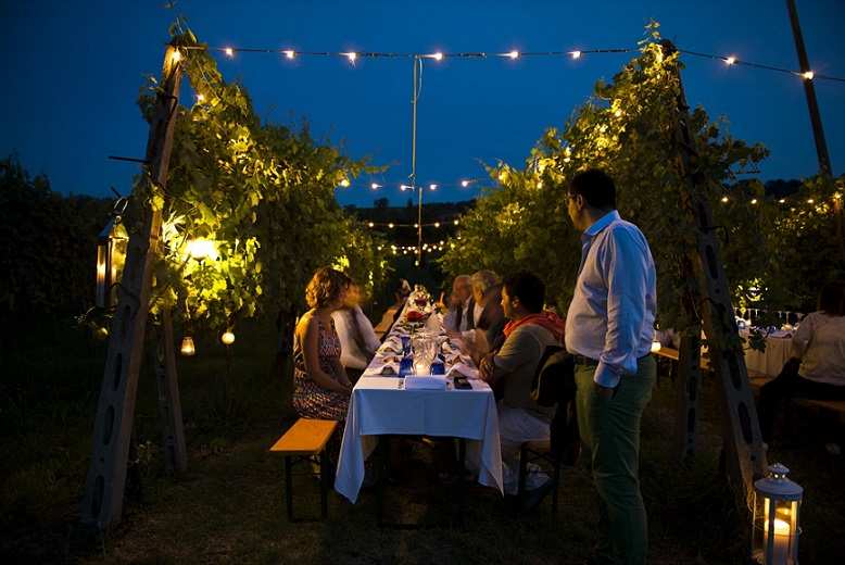 Aperitivi sotto le stelle, cene in vigna, cinema in cantina, concerti nel vigneto.Tanti gli eventi che animeranno l’estate della Cantina Terracruda, perché se è il vino è sinonimo di convivialità, ciascuno può scegliere il momento migliore per assaporare i prodotti dell’azienda vitivinicola di Fratte Rosa. Si parte venerdì 10 luglio con un aperitivo in cantina al tramonto: dalle 19.30 alle 22.30 degustazione di vino accompagnata da stuzzicheria di prodotti tipici (costo 10 euro), è gradita la prenotazione per gruppi numerosi.Venerdì 17 luglio si riconferma l’appuntamento con Ville e Castella e ci si sposta in vigna per sentire l’origine dell’odore del vino. Alle 18.30 conversazione con il giornalista Gianluca Solera, alle 20.30 cena cucinata dal ristorante “La Graticola” di Fratte Rosa (gradita la prenotazione). Dalle 21.45 l’atmosfera tra i filari si fa ancora più magica con il concerto del pianista spagnolo Pablo Pelaez, dal titolo Kalhargur, che fa riferimento alle persone sedute attorno al fuoco, e sviluppa la circolarità dei quattro elementi. Giovedì 23 luglio ci si immerge di nuovo tra i filari per un appuntamento esclusivo in cui il vino incontra le eccellenze enogastronomiche. Il primo appuntamento con le cene in vigna vede protagonista il pesce cucinato dal ristorante “Vittoria Maris” di Torrette di Fano. Mercoledì 29 luglio “Favetta, Terracotta e Terracruda” con i piatti del ristorante “La Graticola” di Fratte Rosa. Mercoledì 12 agosto il “Nero d’estate” con il ristorante “Osteria del Borgo” di Pergola che propone un menu al tartufo. Mercoledì 19 agosto si chiude con il ristorante “Il Giardino” di San Lorenzo in Campo e la cucina marchigiana (Prenotazione obbligatoria, tel. 0721/777412 o info@terracruda.it Costo della cena 50 euro con una bottiglia di vino da portarsi a casa come ricordo della serata, 0-5 anni gratuito, 6-16 anni 20 euro). Novità dell’estate 2015 l’appuntamento di mercoledì 5 agosto con “Cinema Divino” i grandi film si gustano in cantina: dalle 19.30 visita in cantina, aperitivo, cena in cantina e proiezione del film, con sottotitoli in inglese, “La grande bellezza” (degustazione e film 12 euro, possibilità di cenare in cantina).