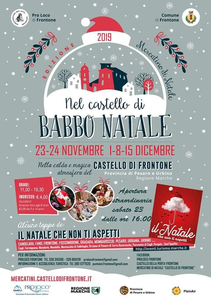 Programma e informazioni sul sito: https://mercatini.castellodifrontone.it – pagina Facebook Mercatino di Natale “Castello di Frontone”.