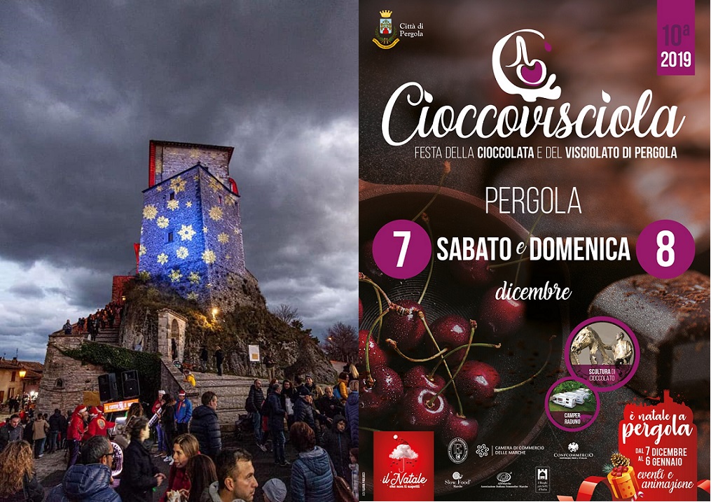 A Pergola, città dei Bronzi dorati, si parte già sabato con la decima edizione della CioccoVisciola di Natale: la festa della cioccolata e del visciolato organizzata dall’Amministrazione comunale con la preziosa collaborazione di Confcommercio Pesaro Urbino, Camera di Commercio delle Marche, Slow Food Marche e Ais Marche. Due giornate intese nel meraviglioso centro storico, con stand di prodotti tipici e cioccolateria di qualità, mercatini ricchi di tante idee regalo, concerti, animazione, degustazioni, cooking show, sport, mostre, la CioccoCena, momenti d’approfondimento e il tradizionale raduno camper. Un menù ricco e variegato, impreziosito da una novità miscela di arte e gusto: la scultura di cioccolato rappresentante i tesori della città, i Bronzi dorati (cavaliere a dimensione reale), l’unico gruppo statuario in bronzo dorato dell’età romana giunto fino a noi. A realizzarla sarà Fabio Mangialardi docente dell’Istituto superiore ‘Panzini’ servizi per l’enogastronomia e l’ospitalità alberghiera di Senigallia.