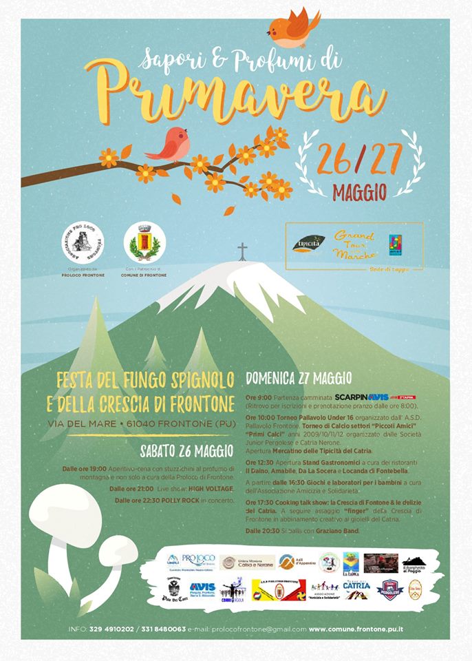 Il Grand Tour delle Marche questa settimana fa tappa nella piccola “Svizzera marchigiana”, dove si svela uno degli spettacoli più coinvolgenti del fantasmagorico risveglio primaverile. A Frontone, suggestivo centro turistico dell’entroterra pesarese ubicato alle pendici del massiccio del Catria, il 26 e 27 maggio va in scena “Sapori e profumi di Primavera”.