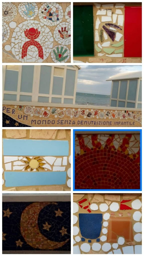 Il progetto dedicato alla sensibilizzazione della denutrizione infantile e’ composto da oltre 150 mani di forme e fantasia diverse, realizzate con materiale di recupero da bambini, adulti e tanti turisti durante i laboratori proposti dal gruppo di mosaico dell’associazione culturale chiaro suro di Marottta.