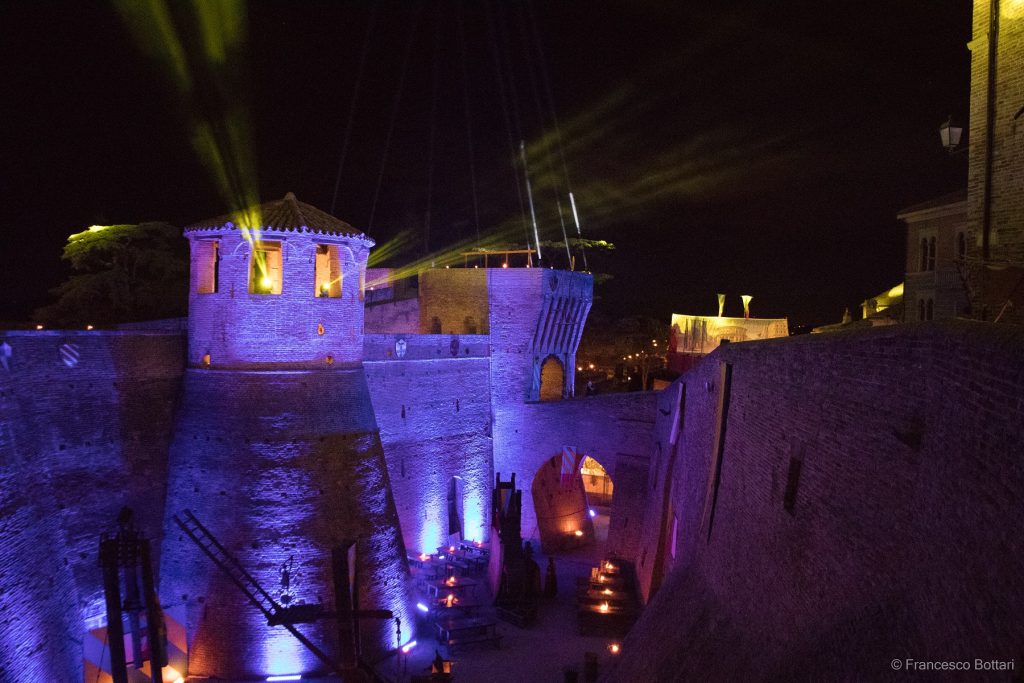 Al tramonto e in un ambiente militaresco, si offrirà l’occasione di rivivere le antiche atmosfere di un accampamento militare, allietati da musici e giullari. Contemporaneamente a esercitazioni di tiro con l’arco e balestra, proprio come un tempo, ci si potrà rifocillare con un menu all’insegna di antiche ricette. Il 14 e il 15 sarà la volta del tradizionale spettacolo teatrale di suoni e luci (organizzato dalla pro loco e con la regia di Ultrasound eventi) che coinvolgerà il palco allestito in piazza della Rovere e la Rocca con momenti di teatro, danza e proiezioni. Tradizionalmente il tema dello spettacolo trae origine dalla mitologia o letteratura classica: nella 59esima edizione la tematica dello spettacolo coreografato in piazza della Rovere, con inizio alle ore 22,45, sarà “Nel Mezzo del Cammin… Benvenuti all’Inferno”, un omaggio al sommo poeta Dante Alighieri. Ci sarà la possibilità di prenotare un posto a sedere (circa 300 i posti disponibili per i giorni 14 e 15) per lo spettacolo; nei tre giorni della manifestazione si stimano circa 3mila presenze che trasformeranno il tranquillo e suggestivo Borgo tra i più belli d’Italia nel centro rinascimentale tra i più caratteristici del nostro Paese.
