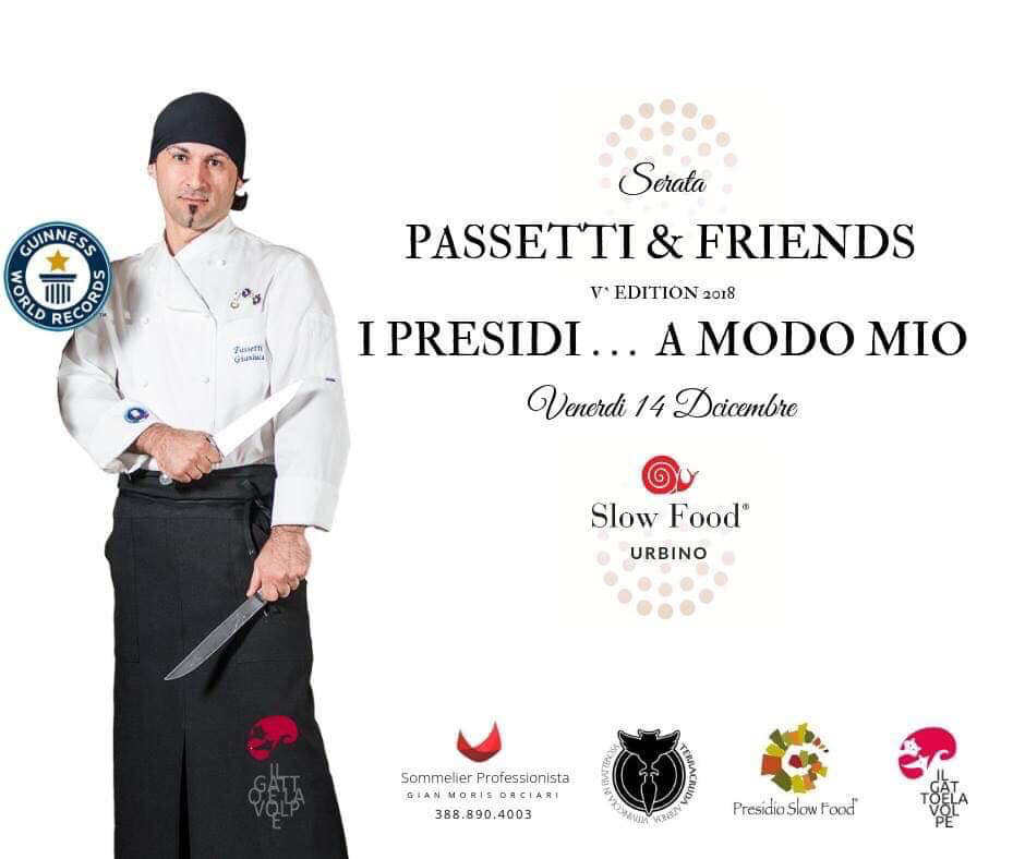 Venerdì 14 dicembre alle ore 20,30 insieme al socio e sommelier professionista Gian Moris Orciari, Slow Food Urbino ha aderito alla V edizione di PASSETTI&FRIENDS che si terrà presso il ristorante Il Gatto e la Volpe.