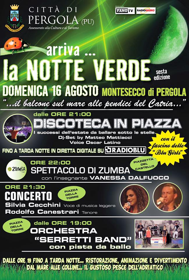 Colori, suoni, sapori e profumi nella magica cornice di Montesecco. Torna domenica la sesta edizione della Notte Verde, uno degli eventi clou del ricco calendario estivo promosso dall’Amministrazione comunale. Il balcone sul mare alle pendici del monte Catria, è pronto per ospitare una serata tra musica, enogastronomia, spettacoli ed animazione. Una notte illuminata dalle stelle e con la riviera Adriatica che si scorge da uno dei più suggestivi terrazzi naturali, posto a 450 metri sul livello del mare. L’evento è stato ideato dalla giunta Baldelli, per valorizzare questo storico borgo, ed è organizzato con la collaborazione dei cittadini di Montesecco. Fin dalla prima edizione ha riscosso un enorme successo di pubblico sia per la bellezza del luogo che per la qualità e varietà del programma. “Abbiamo ideato questo evento – ha sottolinea il sindaco Francesco Baldelli durante la presentazione – per promuovere il nostro territorio e anche questo meraviglioso borgo che negli anni è stato dalla nostra giunta ampiamente valorizzato con importanti opere pubbliche. Anche questa sarà un’edizione ricchissima di iniziative in grado di soddisfare tutti i gusti e di attirare tantissimi turisti. Olandesi, tedeschi, inglesi e anche americani in queste settimane stano visitando la nostra città, grazie all’importante opera di promozione e alla qualità delle manifestazioni promosse”.