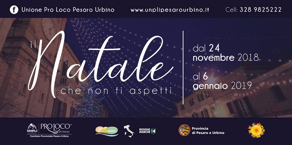 PESARO – Al via il 24 novembre gli eventi del “Natale che non ti aspetti”, il brand che unisce 15 realtà territoriali in un unico calendario ricco di appuntamenti, con il coordinamento del Comitato provinciale Unpli (Unione nazionale Pro loco d’Italia) di Pesaro e Urbino ed in collaborazione con Regione Marche, Provincia di Pesaro e Urbino e Comuni interessati. Mercatini, presepi, luminarie, villaggi di Babbo Natale, paesaggi invernali e magiche suggestioni per un emozionante viaggio tra borghi e castelli dall’atmosfera incantata con tante sorprese per grandi e piccini.