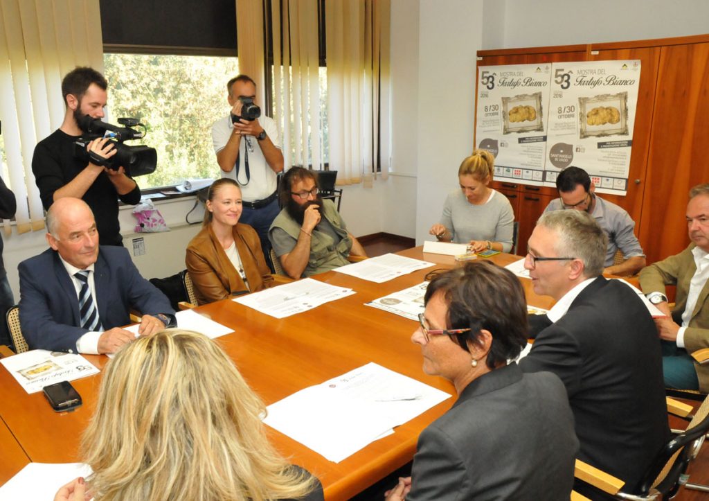Una manifestazione che negli anni ha assunto sempre più prestigio, e non poteva che essere un luogo prestigioso a svelarne le caratteristiche e le novità, la Sala “Serrini” di Palazzo Raffaello della Regione che questa mattina ha ospitato la conferenza stampa di presentazione, una conferenza alla quale non è voluto mancare, nonostante i numerosi impegni istituzionali, il presidente della Regione Marche Luca Ceriscioli: “Siamo in Regione – ha detto il presidente – perché il tartufo di Sant’Angelo in Vado rappresenta un’identità delle Marche, terra fortemente vocata al tartufo, eccellenza che rappresenta una freccia importante nel nostro arco di offerte. Faccio i complimenti al sindaco perché ogni anno riesce ad esaltarne le qualità e mi impegno personalmente ad essere presente sul posto durante la Mostra per toccare con mano quelle che sono le caratteristiche dell’edizione 2016 dell’evento”.